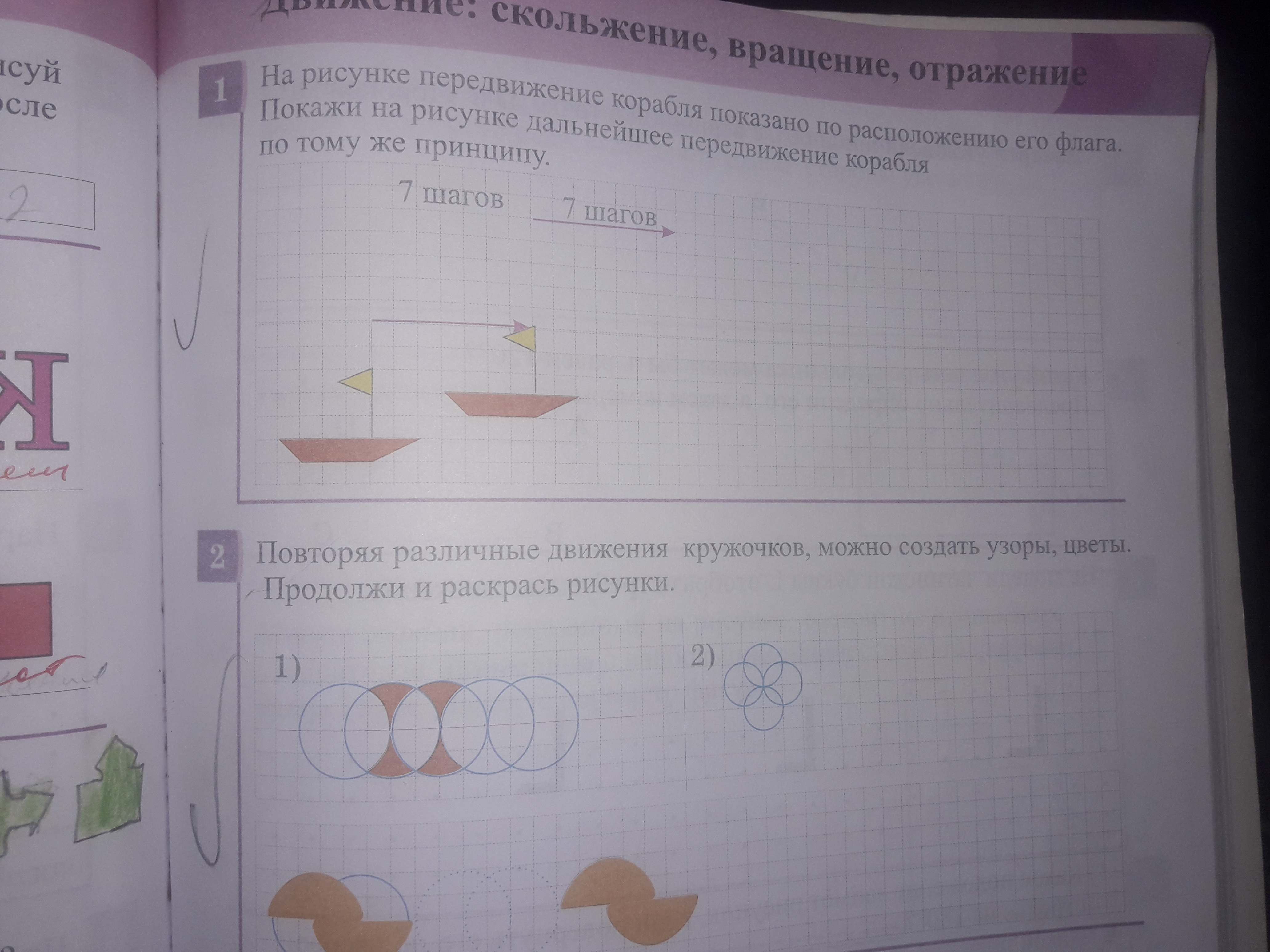 "Хвост" следующего корабля на 1 клетку вперед и на 2 клетки вверх.