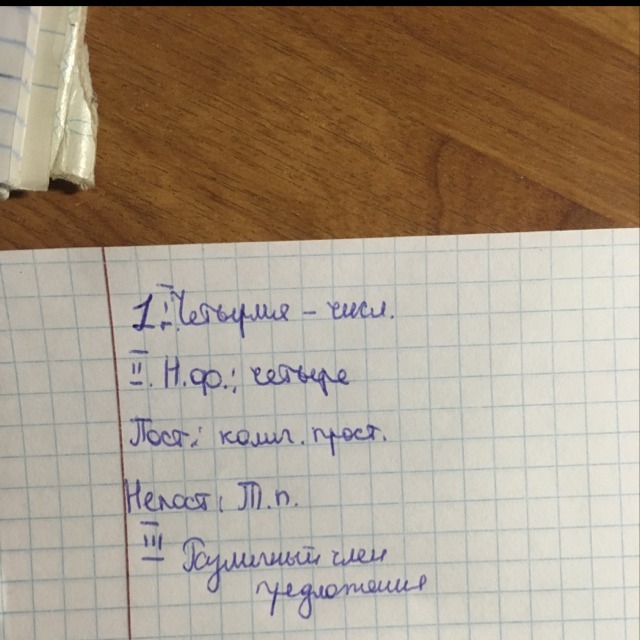 2,Морфологические признакиНачальная форма: четыре (именительный падеж);Постоянные признаки: количественное, простое;Непостоянные признаки: творительный падеж.Синтаксическая роль