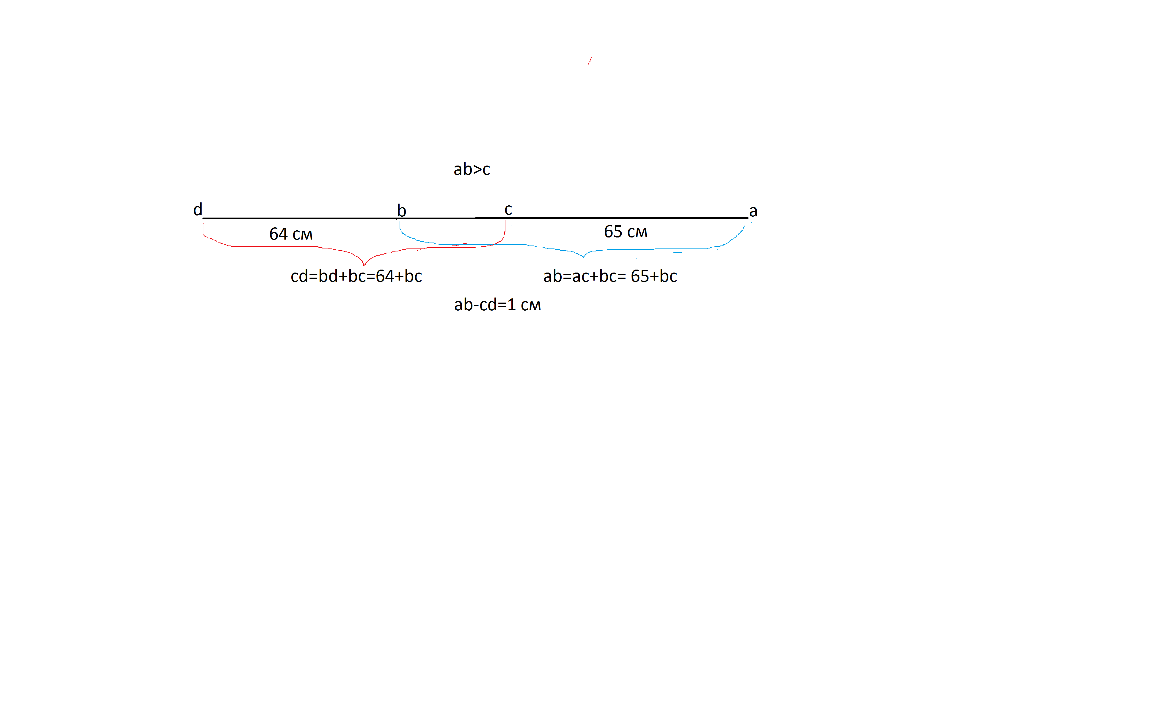 ac=65см, bd=6.4дм. Сравните отрезки ab и cd