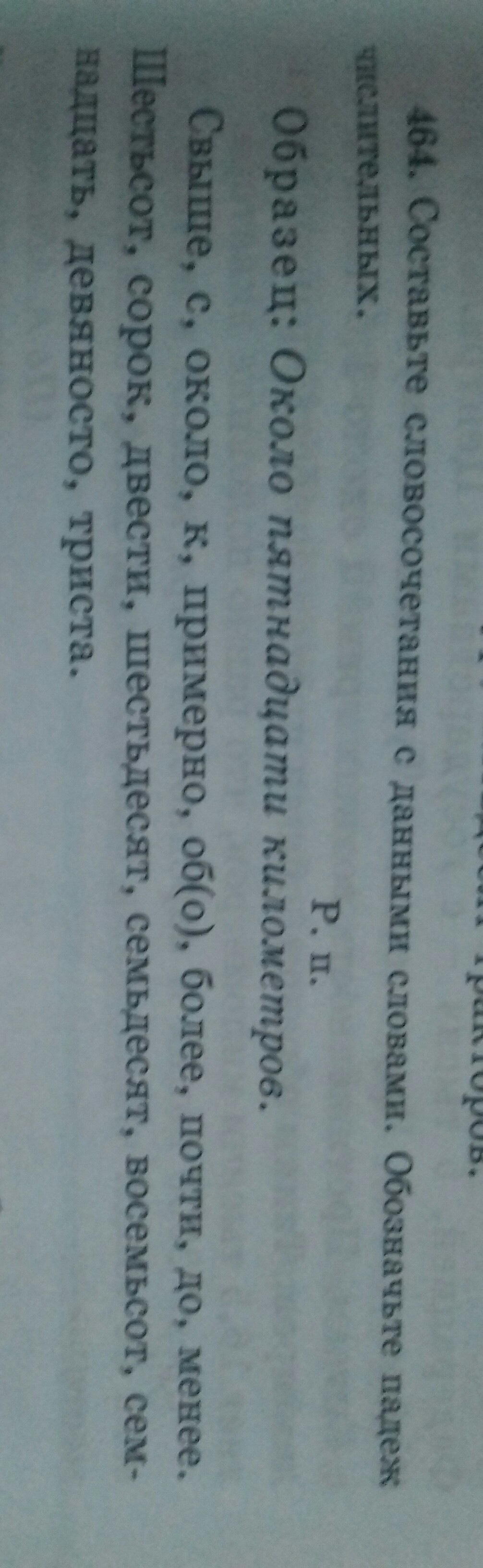 464 Составьте словосочетания с данными словами обозначьте обозначьте падеж у числительных