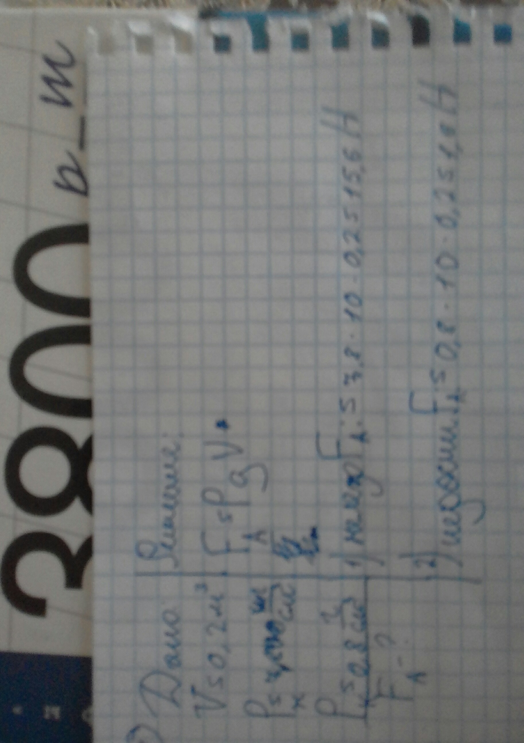Определить выталкивающую силу действует на него при полном погружении в воду и керасин