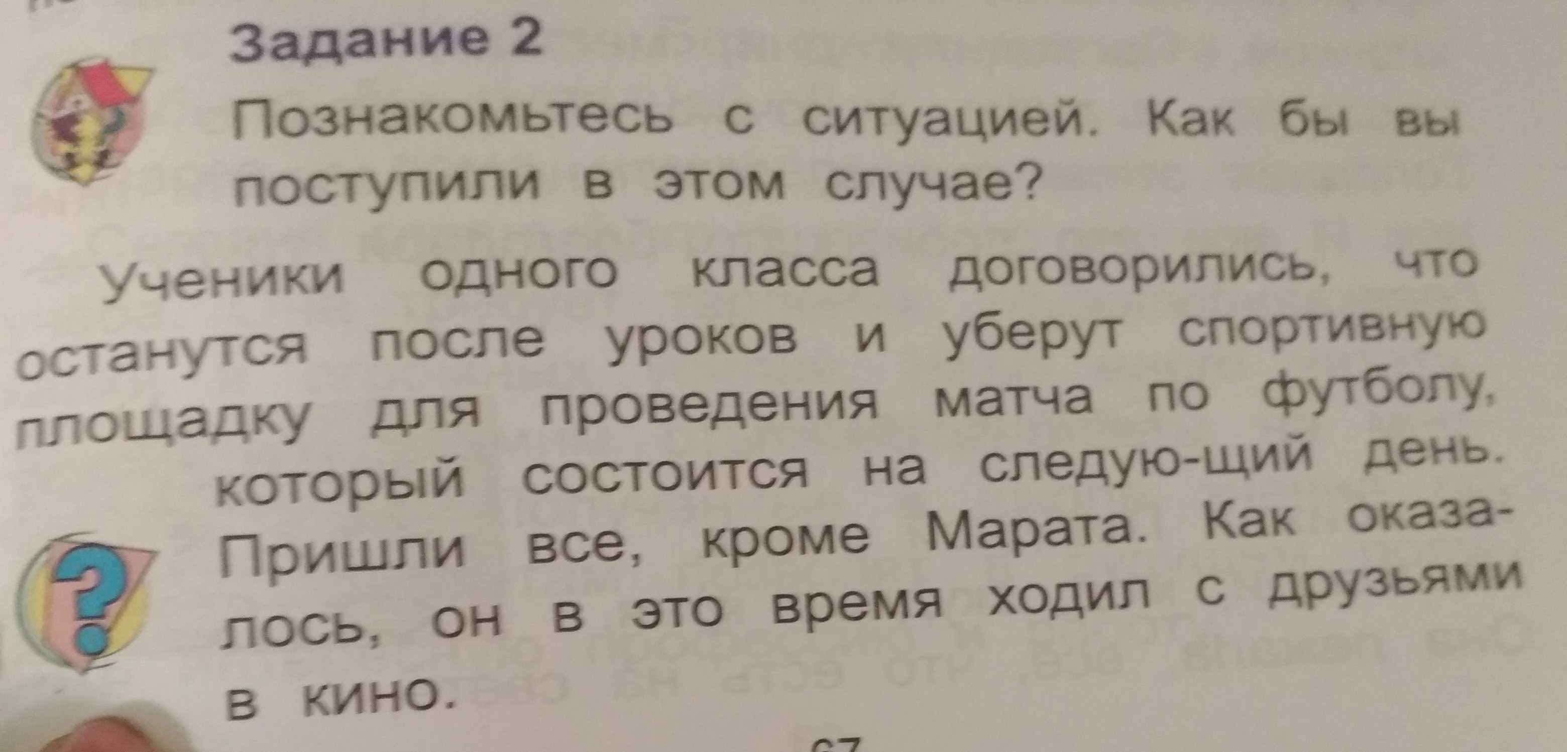 если бы на следующий день играли бы эти дети с Маратом в одной команде, можно было бы с ним не разговаривать/спросить '"почему он не предупредил"