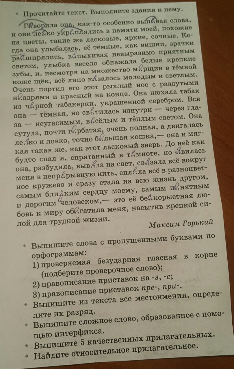 1) Говорила - говор, выпевая - петь, укреплялись - крепко, морщин - морщиться, казалось - кажется, ноздрями - ноздри, черной - чернь,светилась - свет, веселым - весело, горбатая - горб, большая - больше, в темноте - темный, явилась - явь, связала - связь, сплела - оплёт, оплётка, понятным - пОнял.
