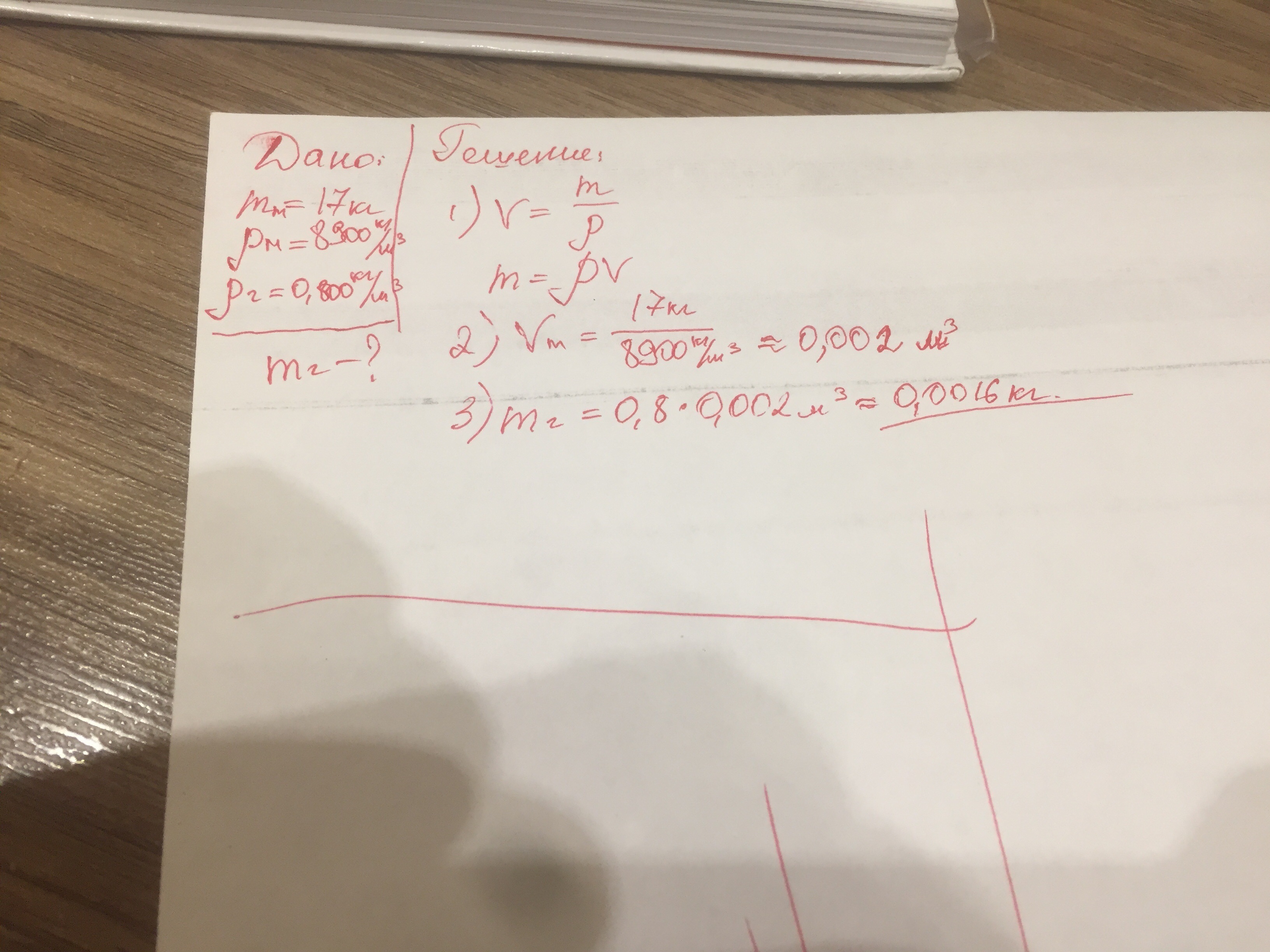 Медную деталь массой 17 кг опустили в полный бак с газом. Чему равна масса газа,который вылился?