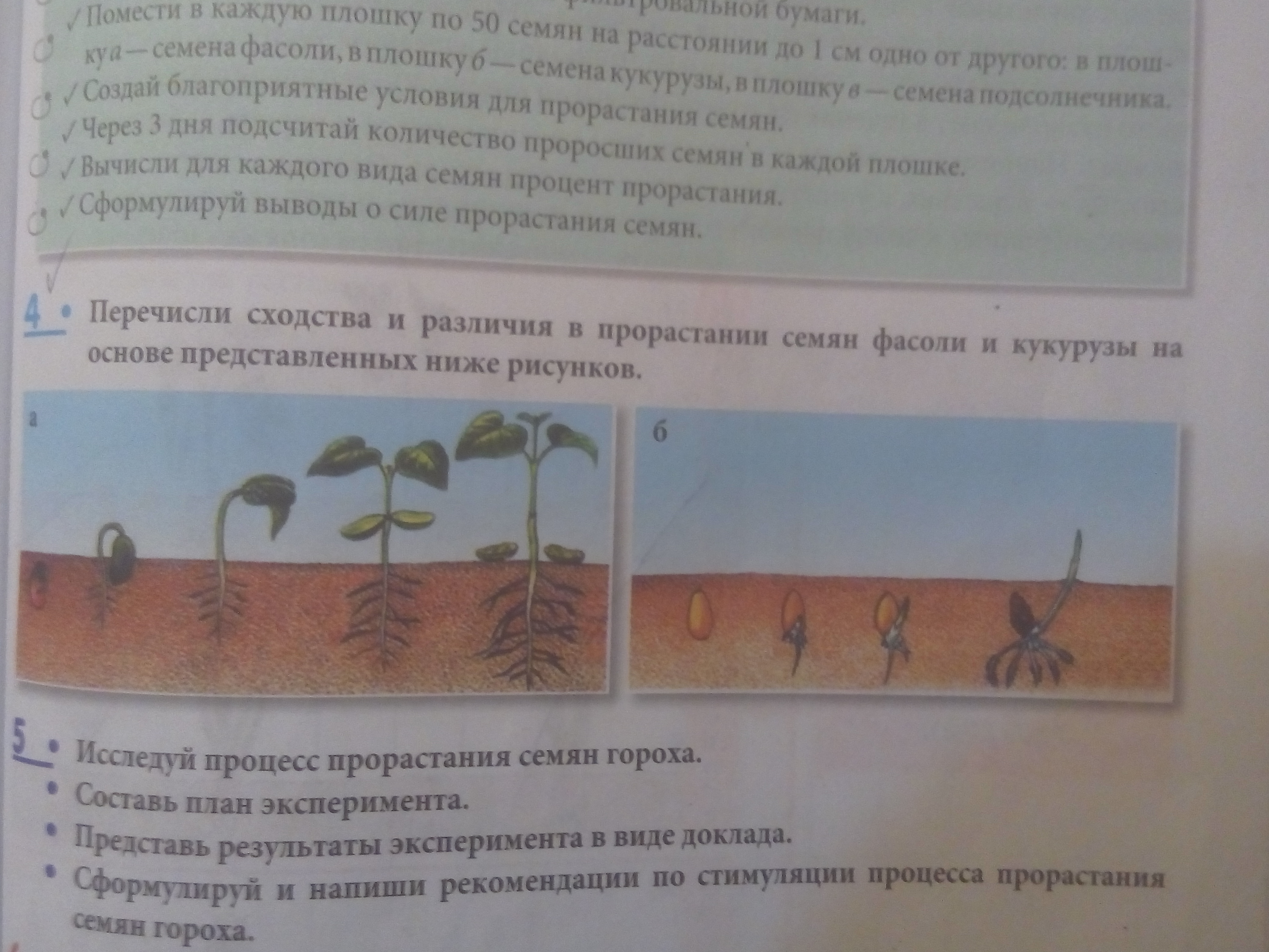 2. Сроки прорастания у кукурузы и фасоли разные. Фасоль прорастает быстрее.