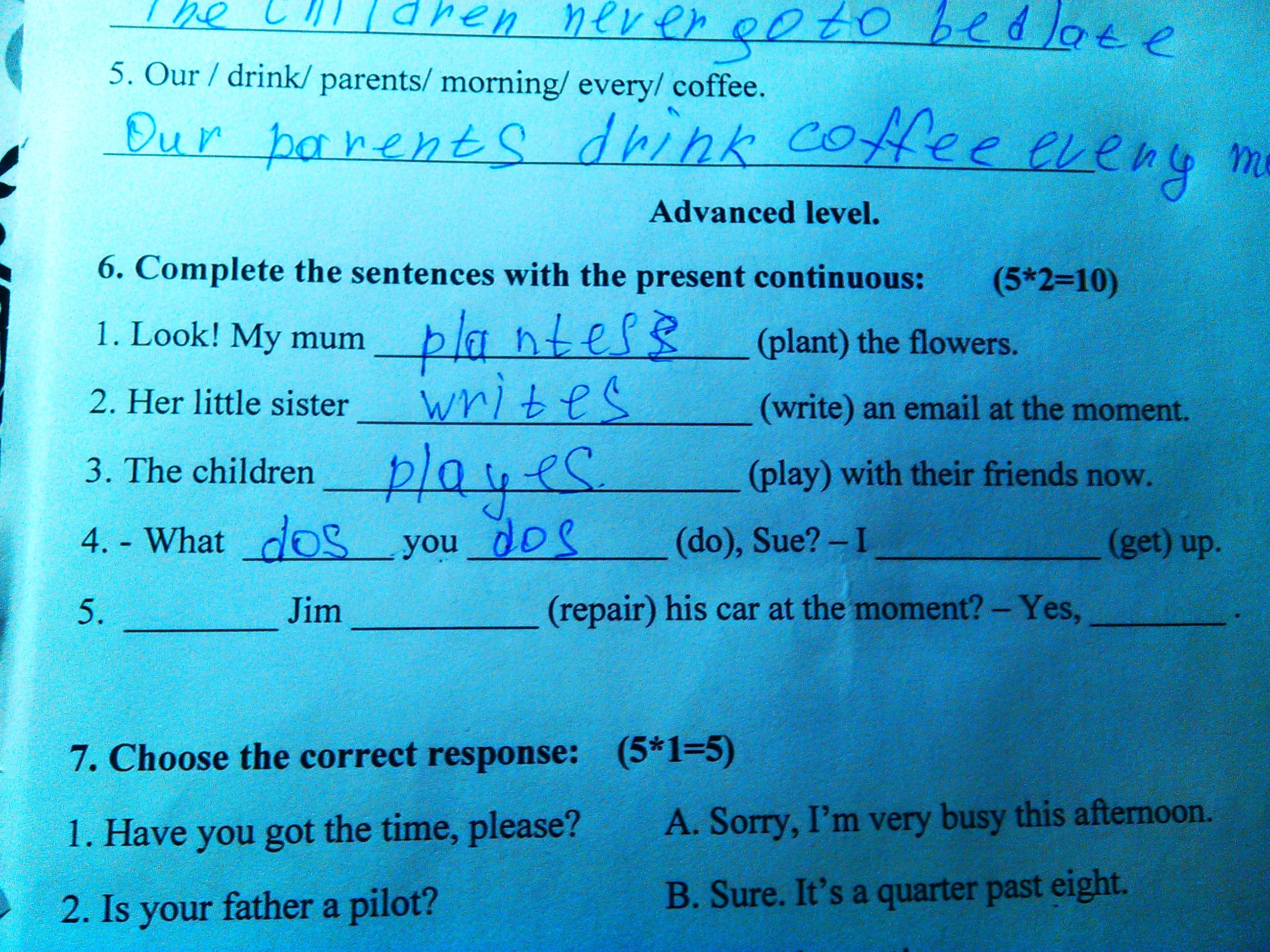 5. Is Jim repairing his car at the moment? - Yes, he is.