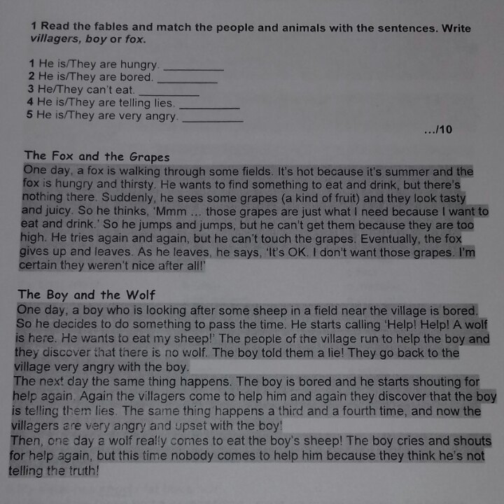1. 1 - Fox, 2 - Boy, 3 - Fox, 4 - Boy, 5 - Villagers