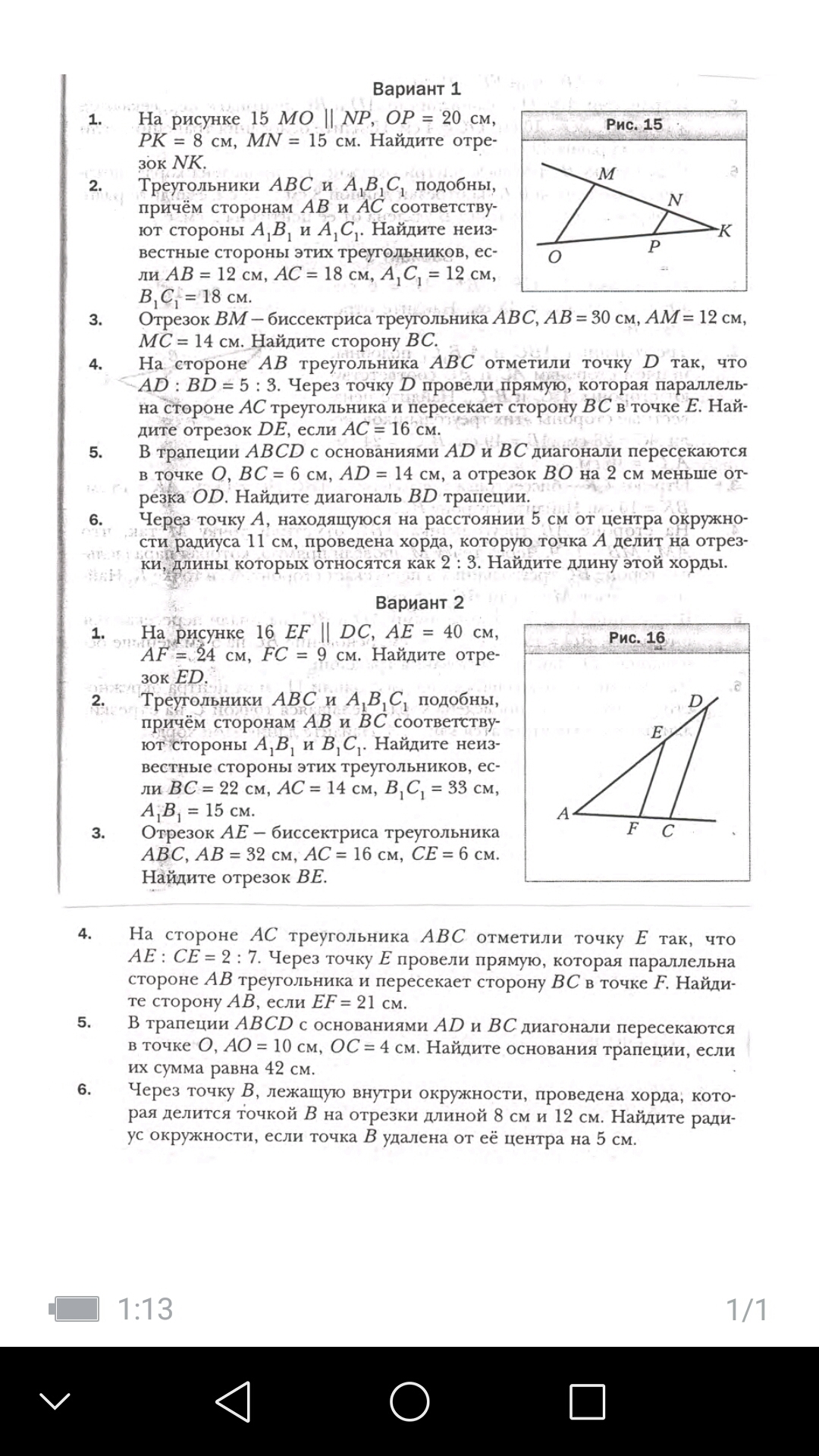 пожалуйста, 5 задача 2 варианта. Я поняла что тут есть подобные треугольники АОД И ВОС, но не знаю как решать дальше. помогите пожалуйста срочно.