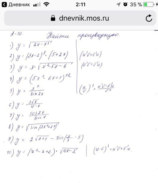 2) у'=(3х-2)^3)'*(5+2х)+(5+2х)'*(3х-2)^3=(9х)^2*(5+2х)+2*(3х-2^3)