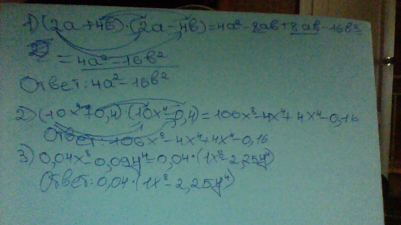 3)0,04x^8-0,09y^4=(0,2x^4-0,3y^2)(0,2x^4+0,3y^2)