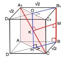 Дано куб с ребром √2 см. Постройте общий перпендикуляр к прямым А1С и ВВ1 и найдите расстояние между этими прямыми.