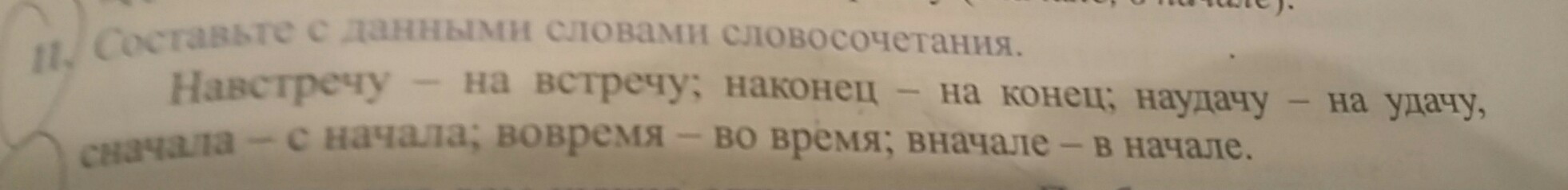 навстречу судьбе, спешить на встречу, наконец потеплело, на конец ножа, наудачу ??? мыслить на удачу, сначала суп, с начала песни, вовремя прибежать, во время лекции, вначале разговора, в начале композиции