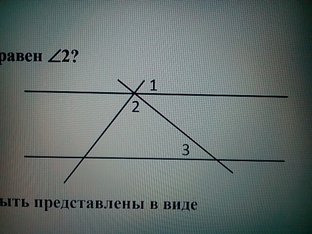 Прямые а и в параллельны. Угол 1=57 градусов, угол 3=49 градусов. Чему равен угол 2?