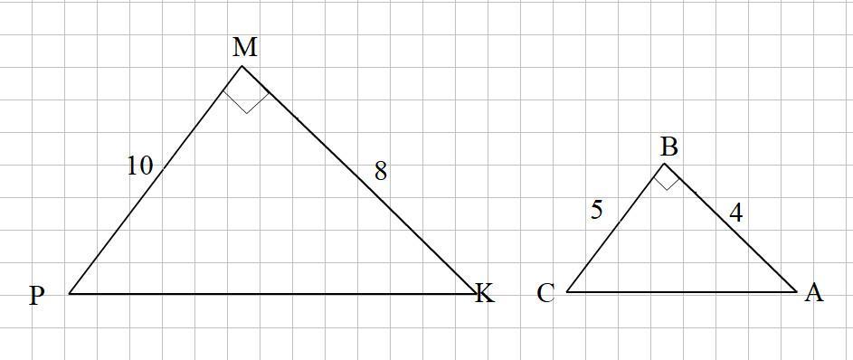 Даны треугольники АВС и МКР такие, что < В = < М = 90, АВ = 4, МК = 8, ВС= 5, МР = 10. Докажите, что данные треугольники подобны.