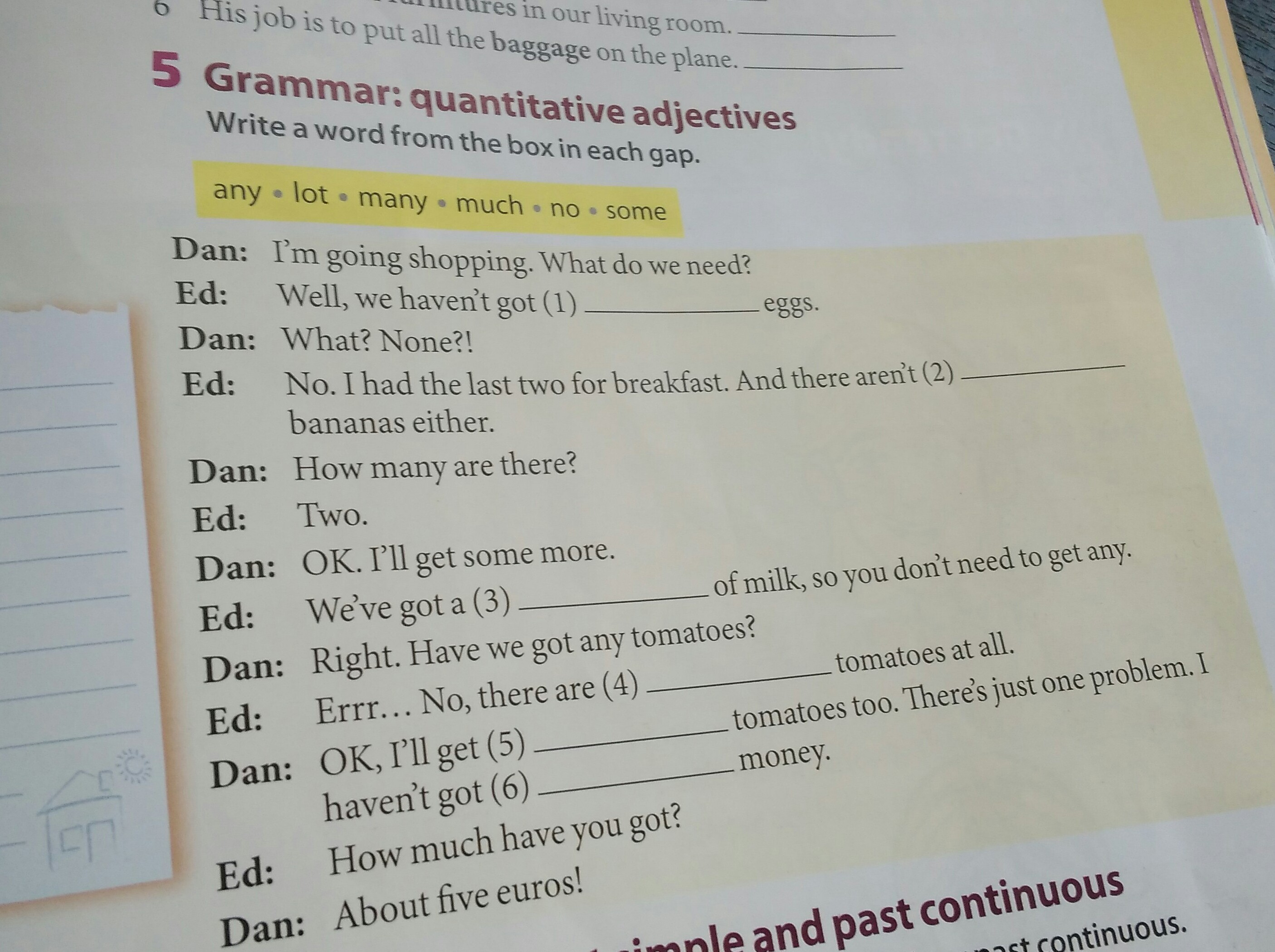 1 - any, 2 - many, 3 - lot, 4 - no, 5 - some, 6 - much