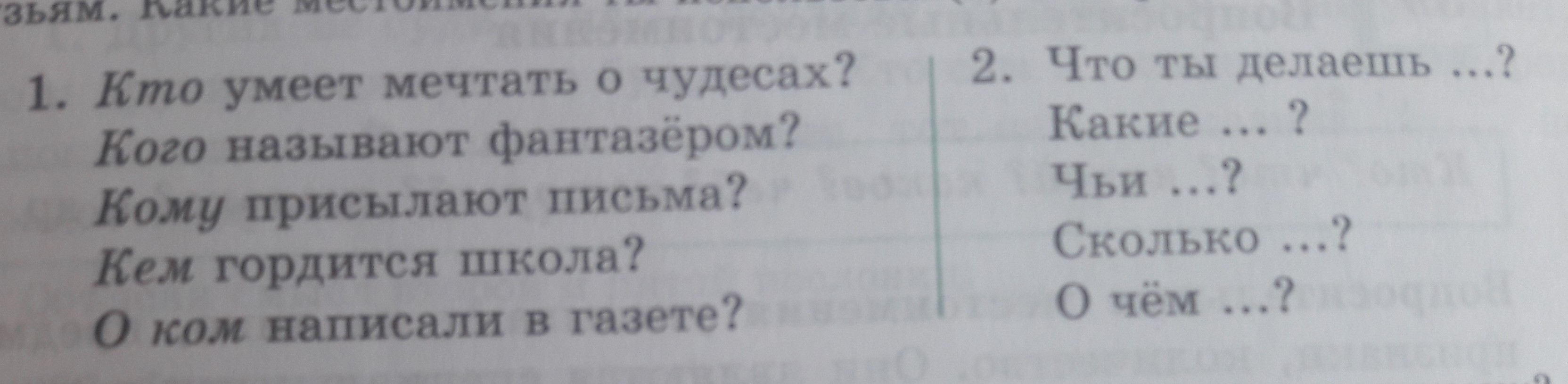 ответь на вопросы При ответе на вопросы в первом столбике используй личные местоимения