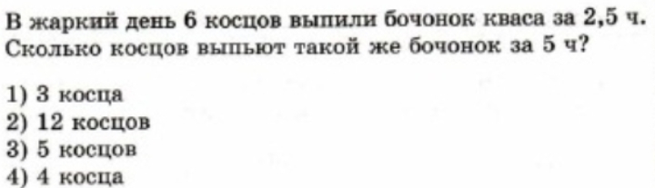 Так как 6 косцов за 2,5ч то за 5ч 3 косца