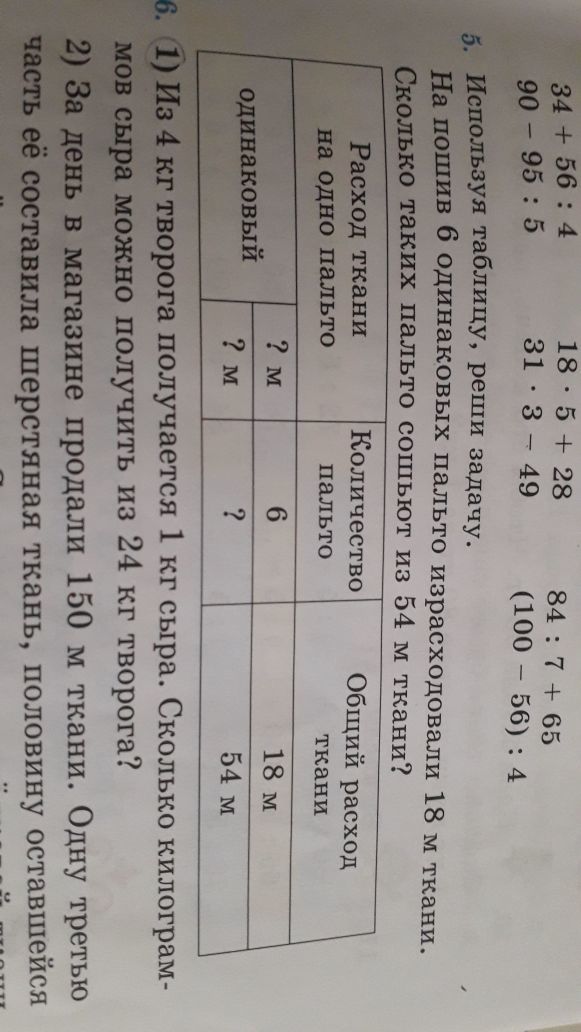 1)18:6=3 (м)- на пошив одного