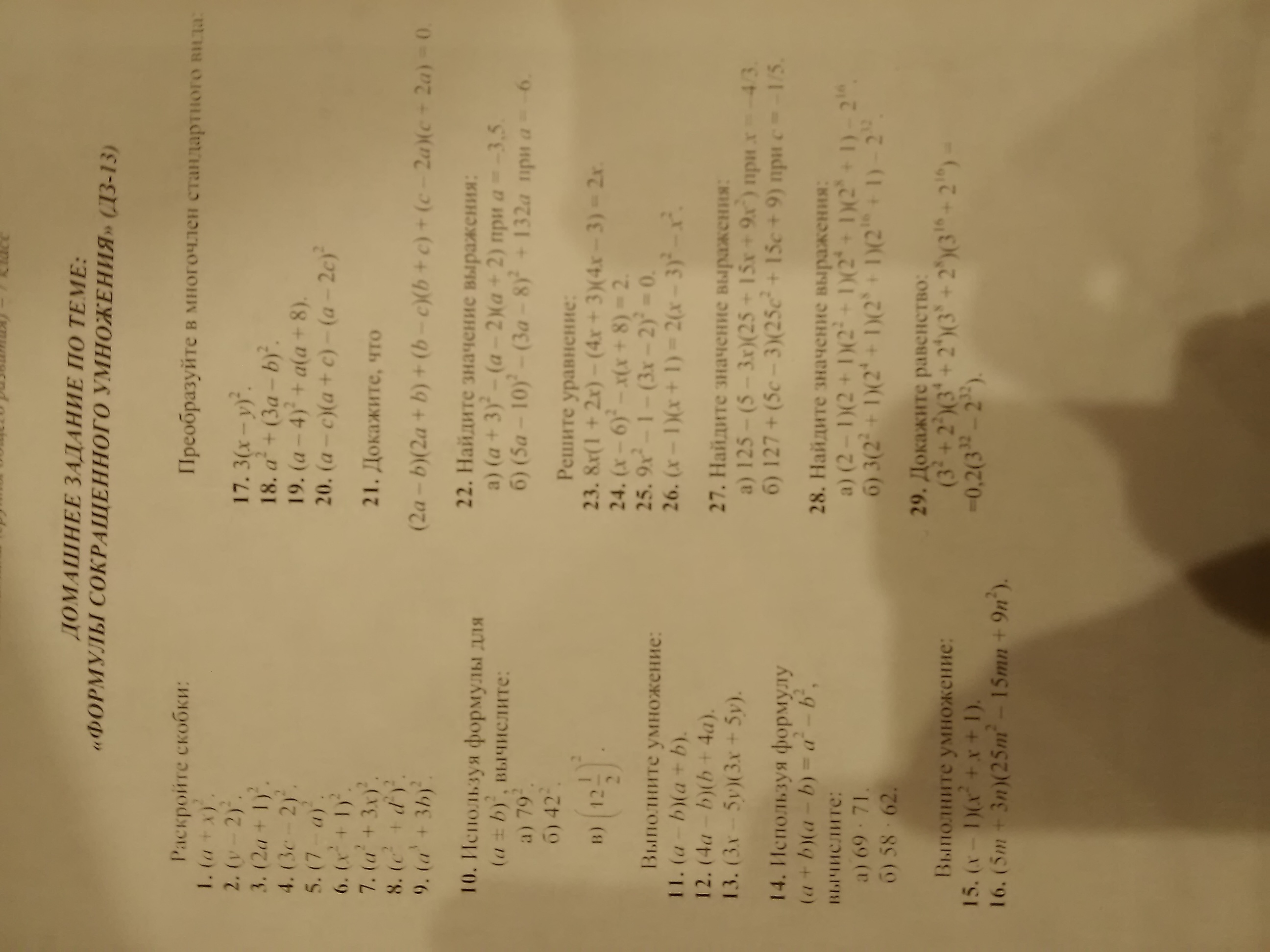 7 - (a^2 + 3x)^2 = a^4 + 6a^2x + 9x^2