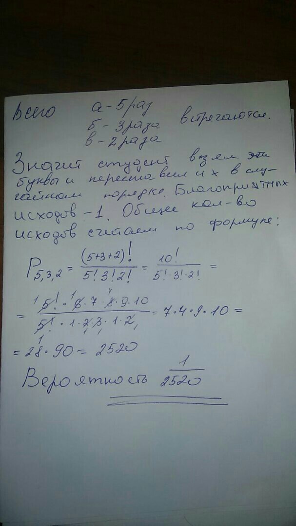 Есть ответ, [1/2520], но нужно Решение)))