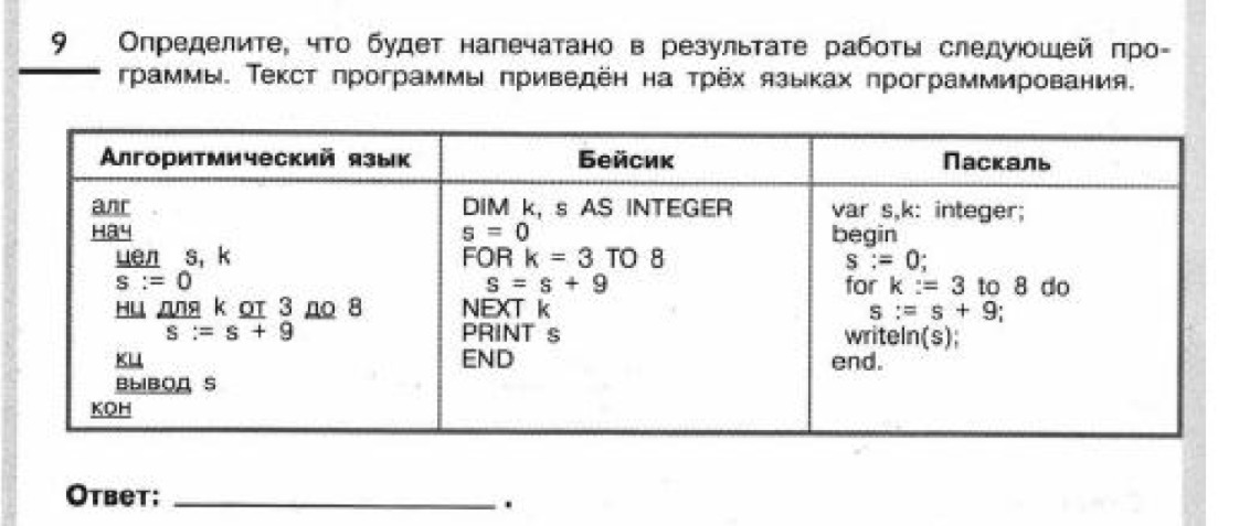 Программа выполнится ровно 6 раз, и за этот период столько же раз прибавит 9 к переменной s