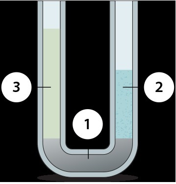 Высота столба воды равна 18 см, а уровень ртути в обоих сосудах одинаковый.