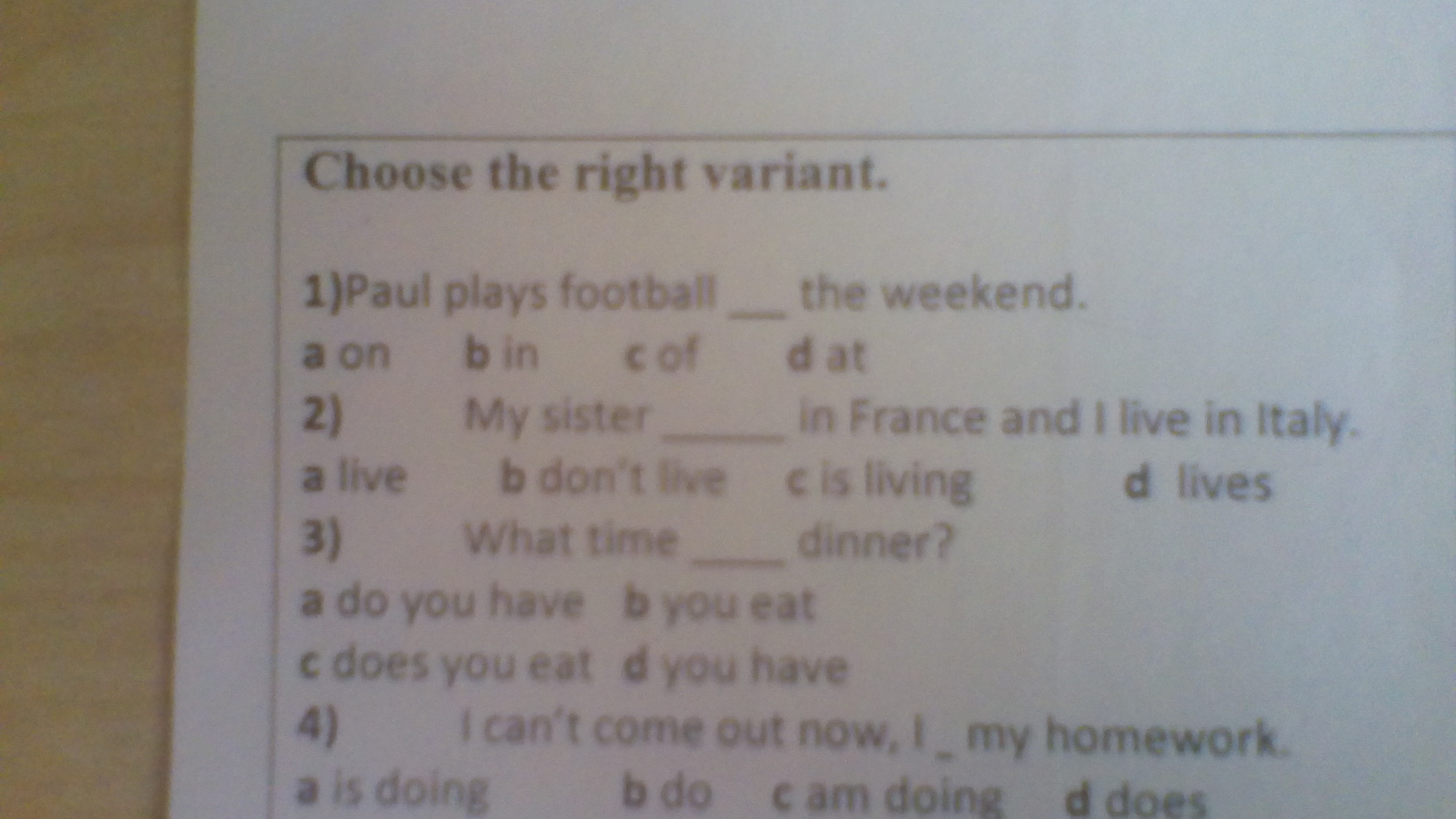 1 is a 2 is d 3 is a 4 is c я просто живу в америке 3 года пов5рь мне