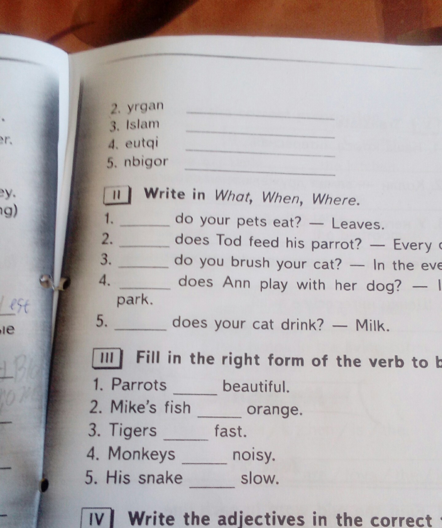 2 задание. 1 What. 2 либо when либо where не видно на фото что именно. 3 тоже самое( не видно).4 Where.5 What