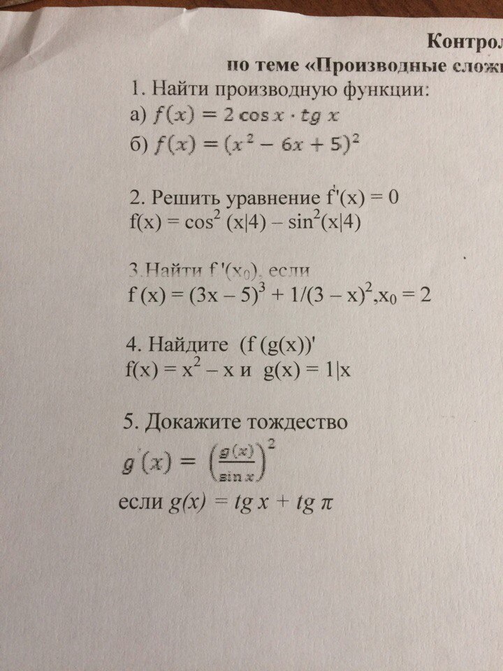 помогите решить кр по алгебре по теме "производные сложных и тригонометрических функций"
