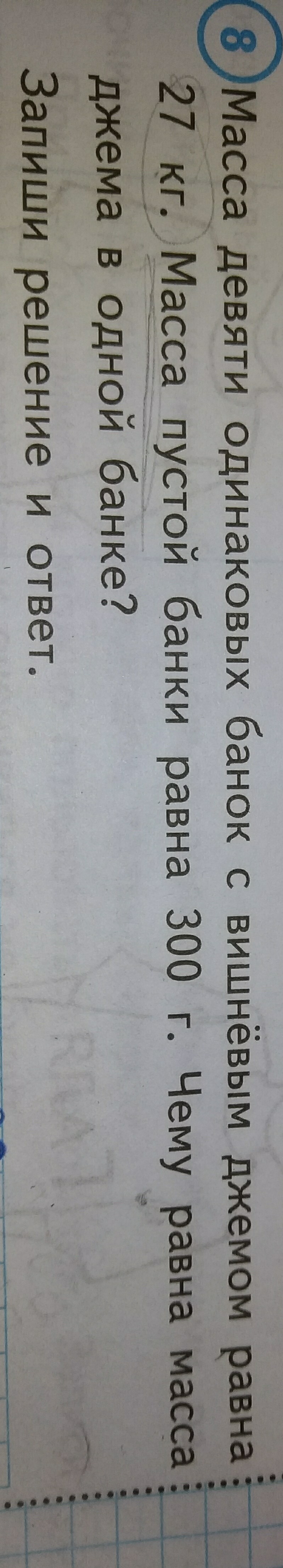 1). 27 : 9 = 3 (кг) - масса джема с банкой.
