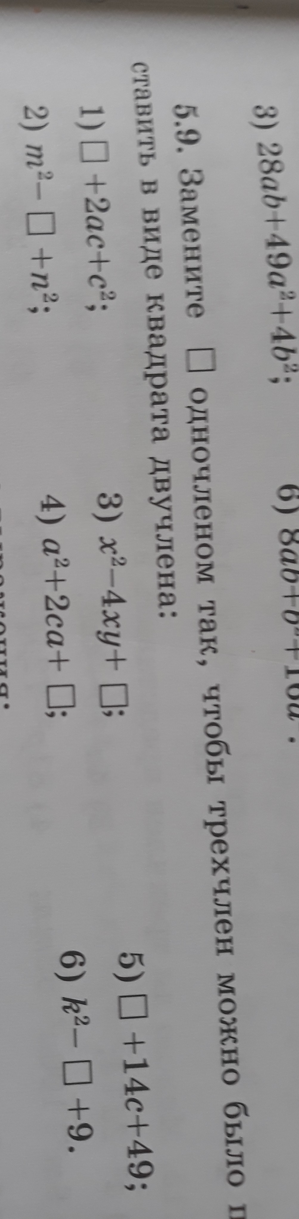 Замените □ одночленом так, чтобы трехчлен можно было представить в виде квадрата двучлена