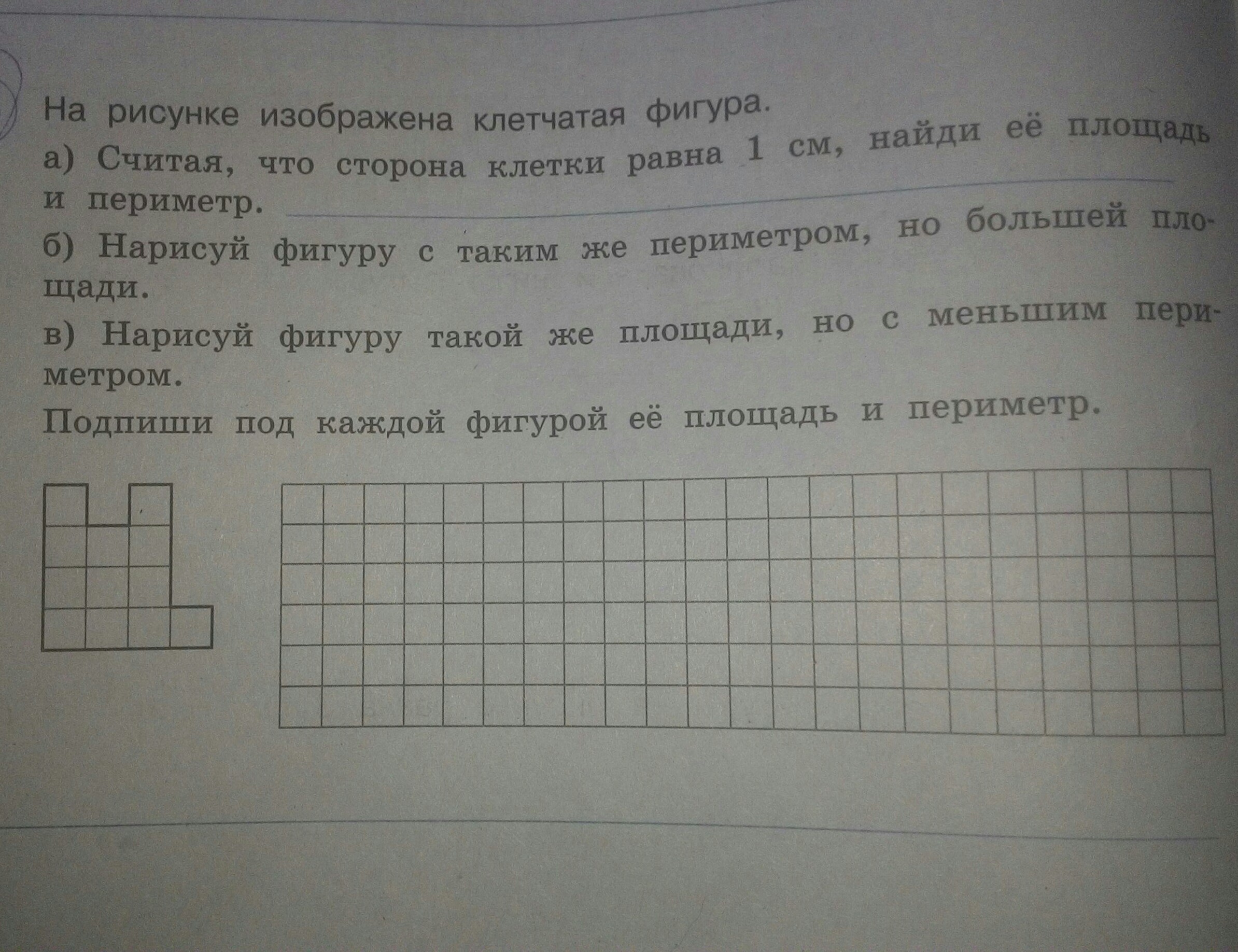 в ширину 4 клетки то есть вниз -и вот новая фигура стем же периметром
