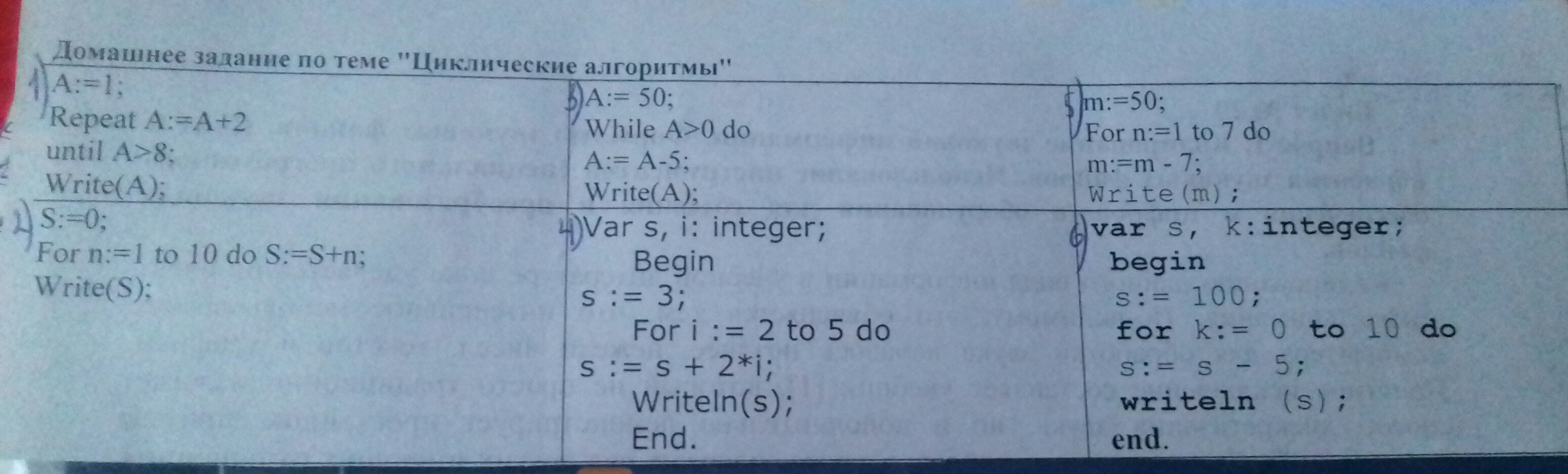 там решение должно быть... например в 5 задании. n=1 ;m=50-7;m=43. n=2;m=43-7;m=43. вот и т.д.. я только решила 5 номер. остальное я забыла решение..