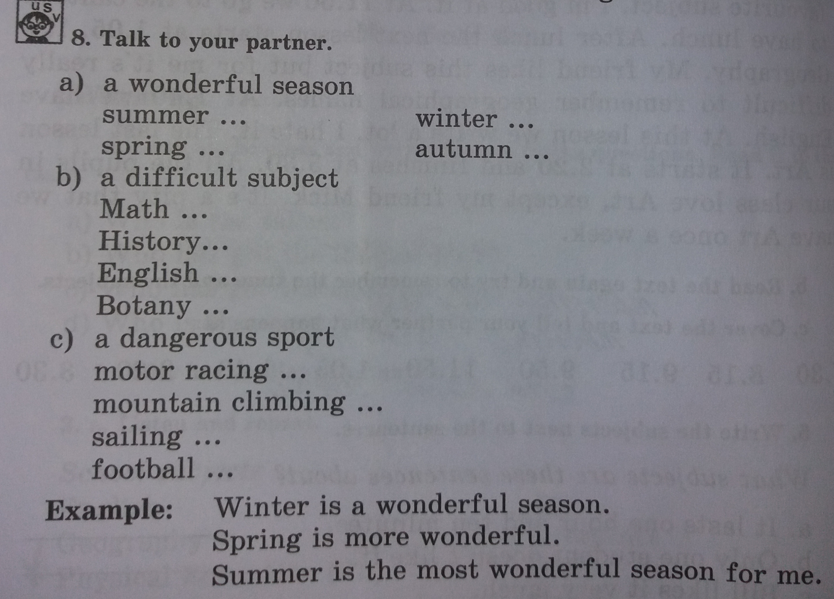 Autumn is more wonderful than spring. Math is a difficult subject for me. History is more difficult subject. English is the most difficult subject for him. Botany is a dofficult subject for us. Думаю, тут ясно как делать дальше. Просто по примеру, чтобы отличалось можно добавлять for me, for us, for her, for them и тд