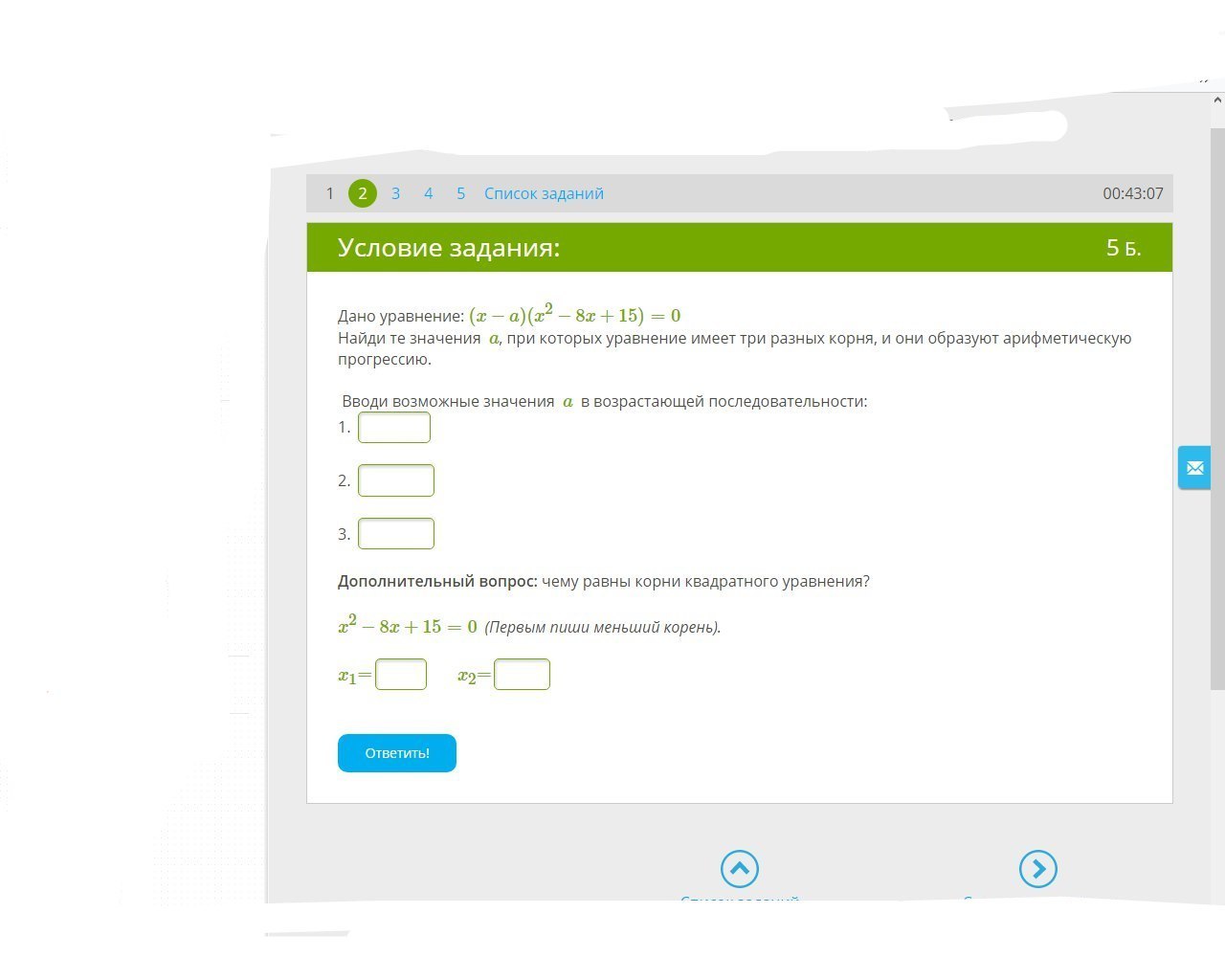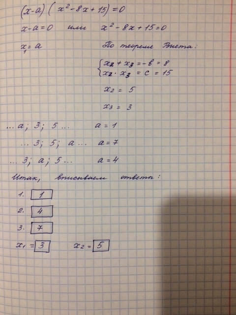 Дано уравнение: (x−a)(x2−8x+15)=0