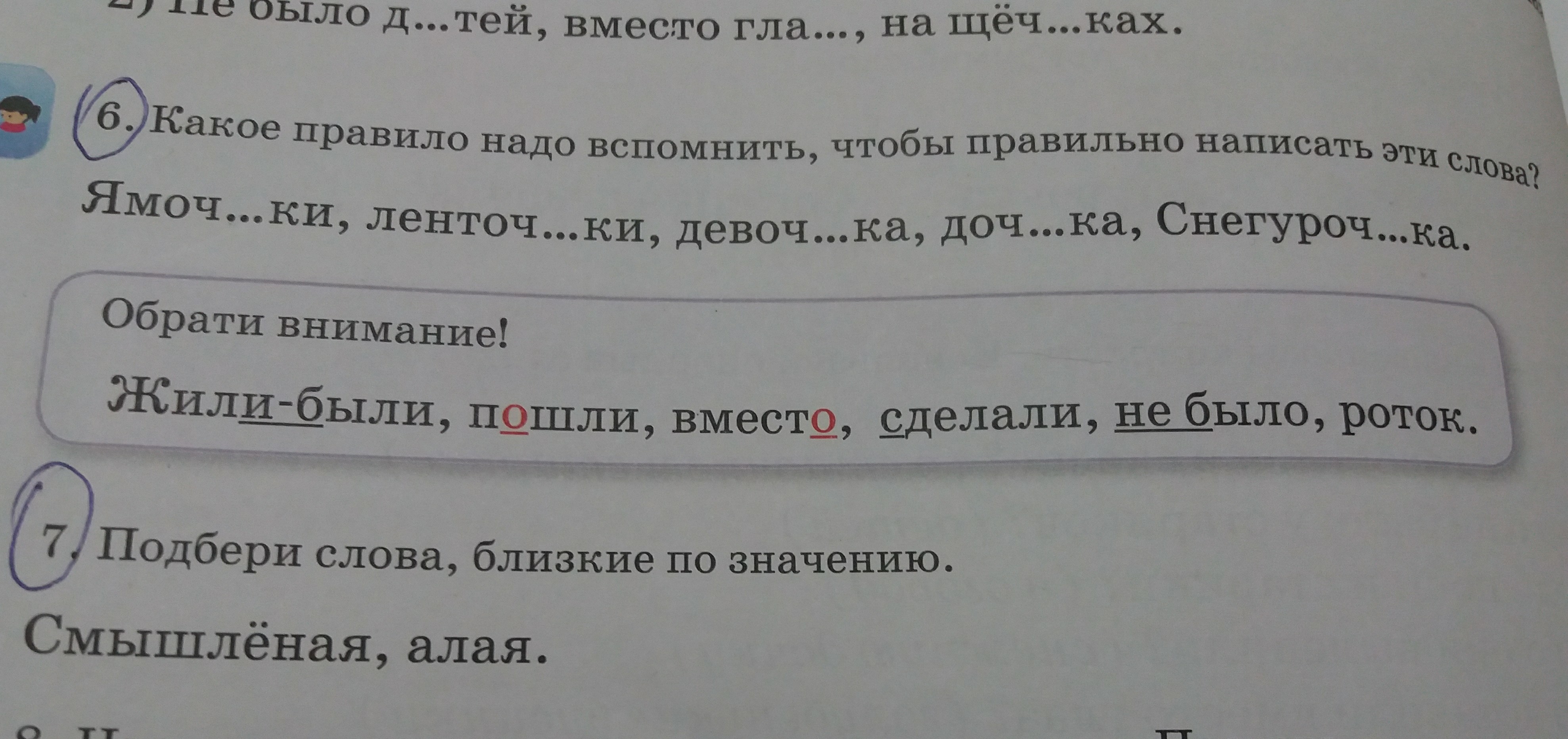 6. какое правило надо вспомнить,чтобы правильно написать эти слова?. 7. Подбери слова, близкие по значению.