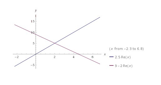координати їх точки перетину (2,5)