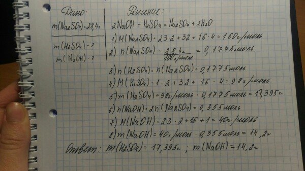 В результате реакции нейтрализации получили 28,4 г сульфата натрия. Найти массы кислоты и основания, вступивших в реакцию нейтрализации.CРОЧНО!!!