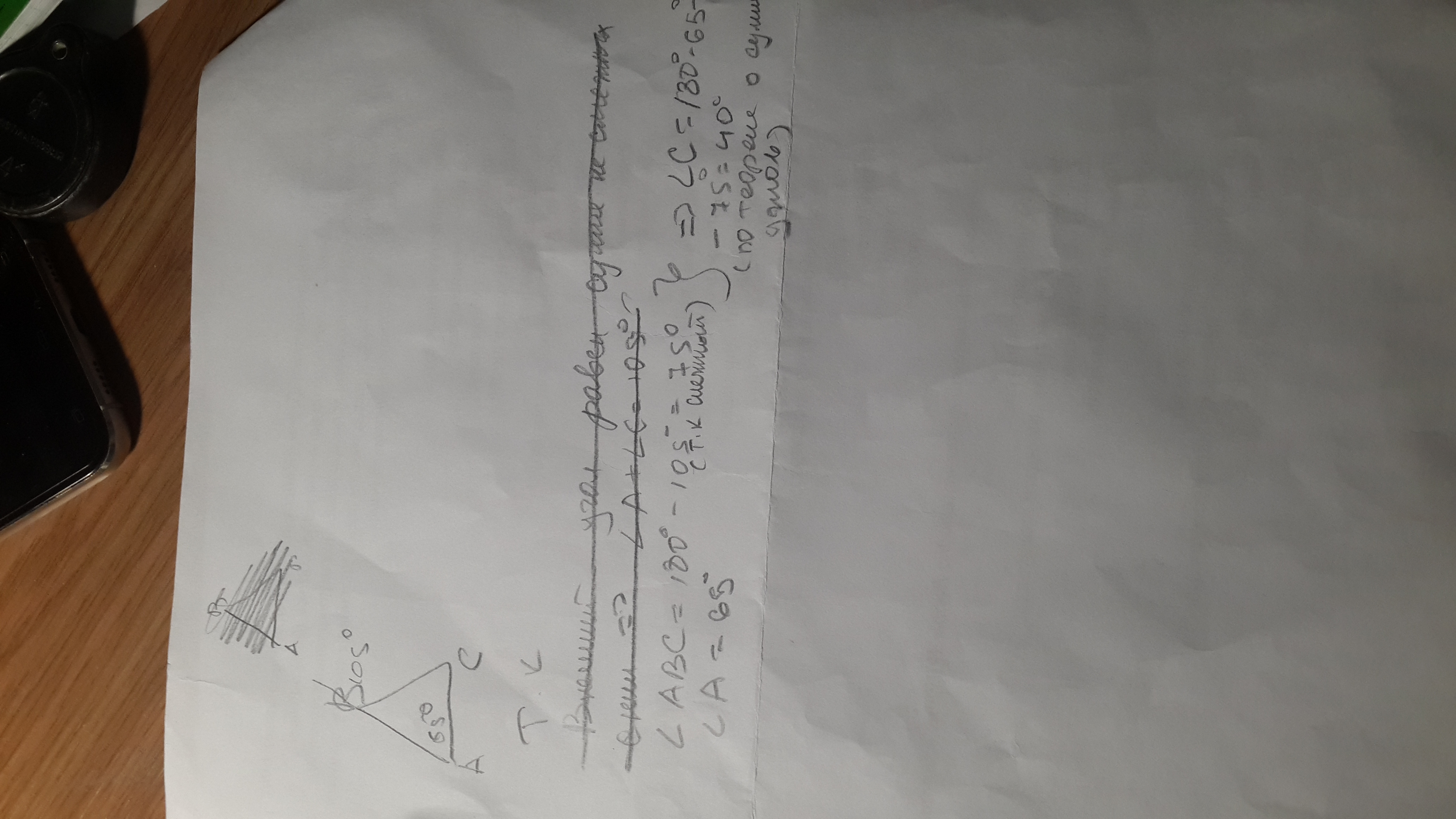 В треугольнике ABC, угол A равен 65*. Найдите углы B и C, если внешний угол при вершине B равен 105*.
