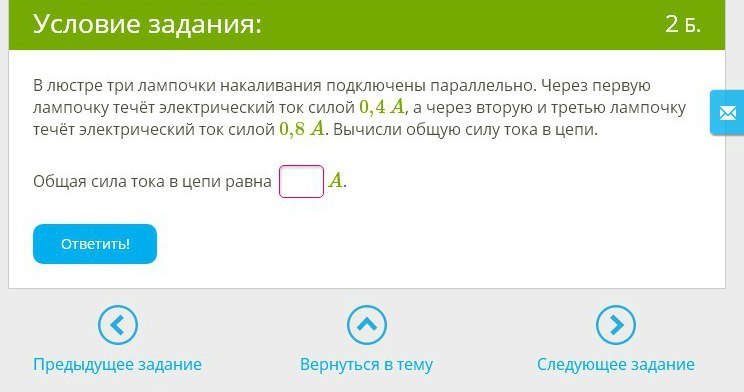 0,4 + 0,8 + 0,8 = 2А