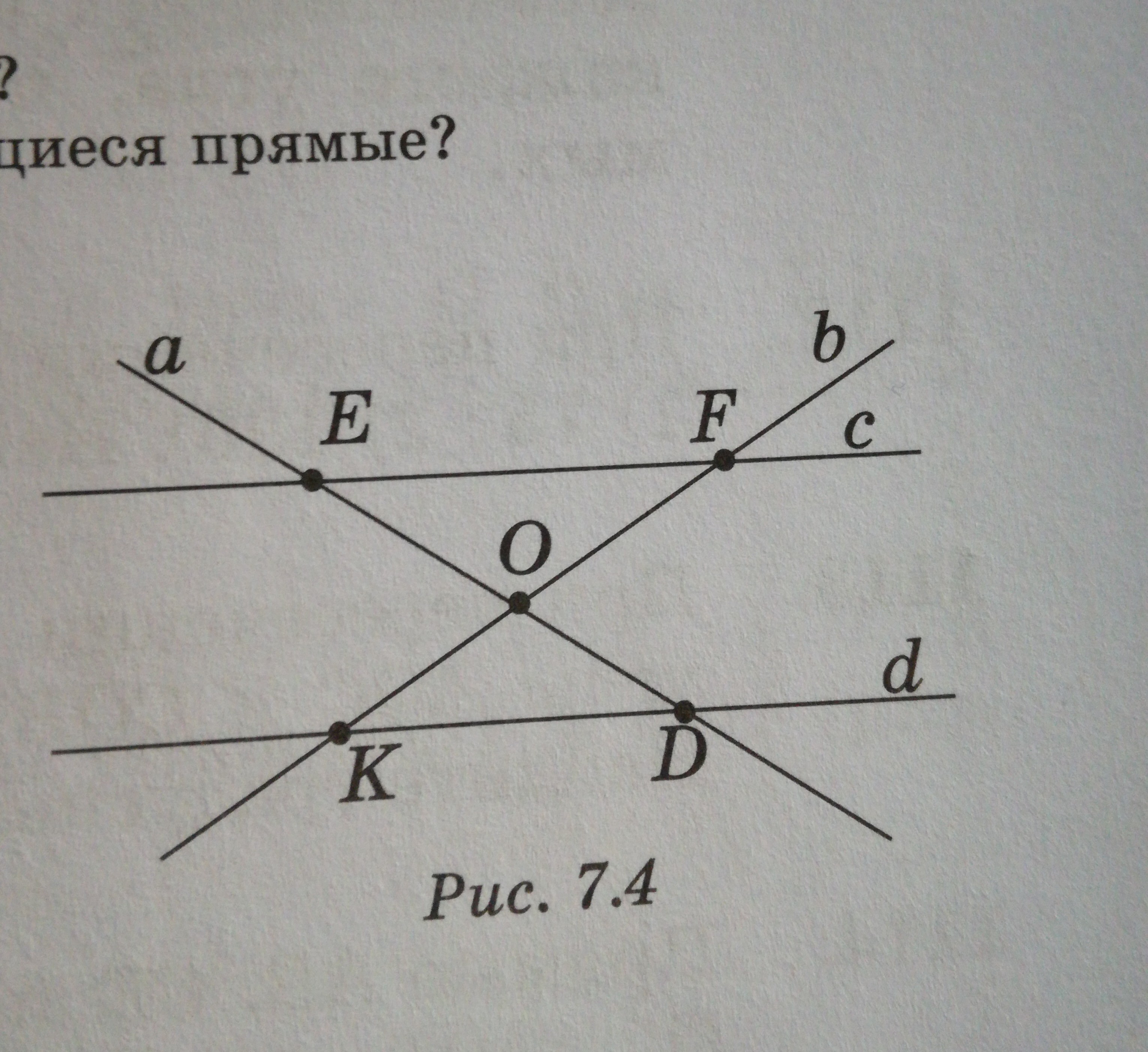 На рисунке 7.4 изображены пересекающиесЯ прямые и точки их пересечения .Назовите их