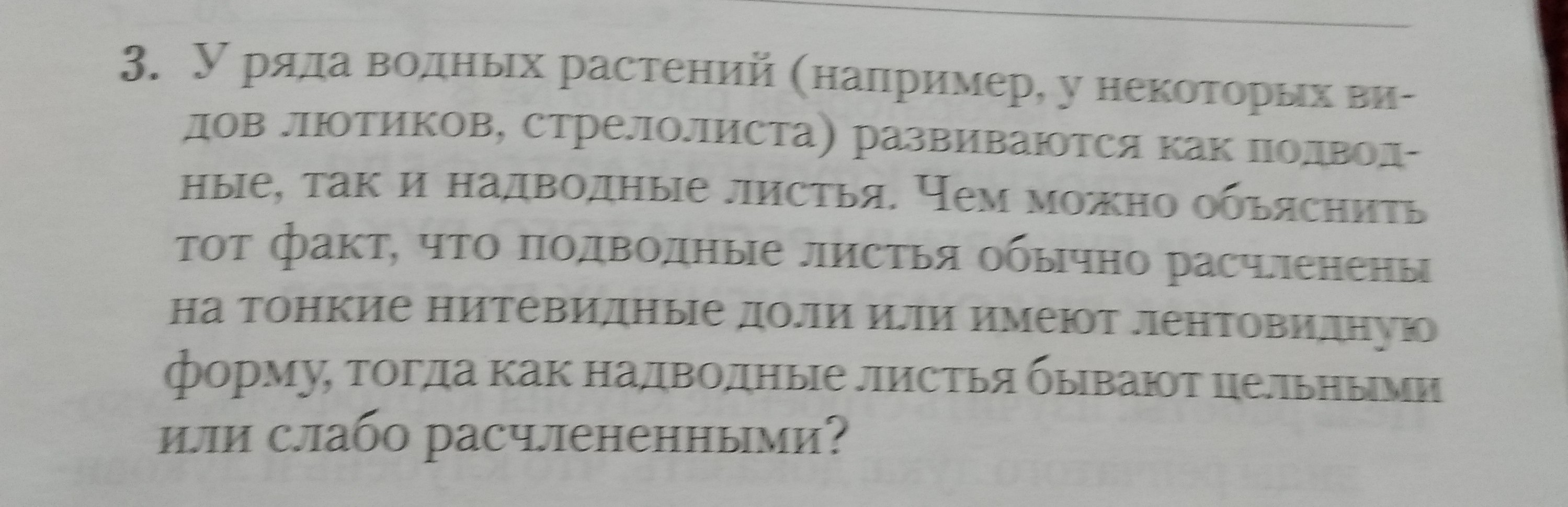 Некоторые листья водных растений расчленены, потому что с помощью этих листьев растение двигается. А верхние надворные нужны для дыхания растения, и если они будут расчленены, то растение не сможет дышать