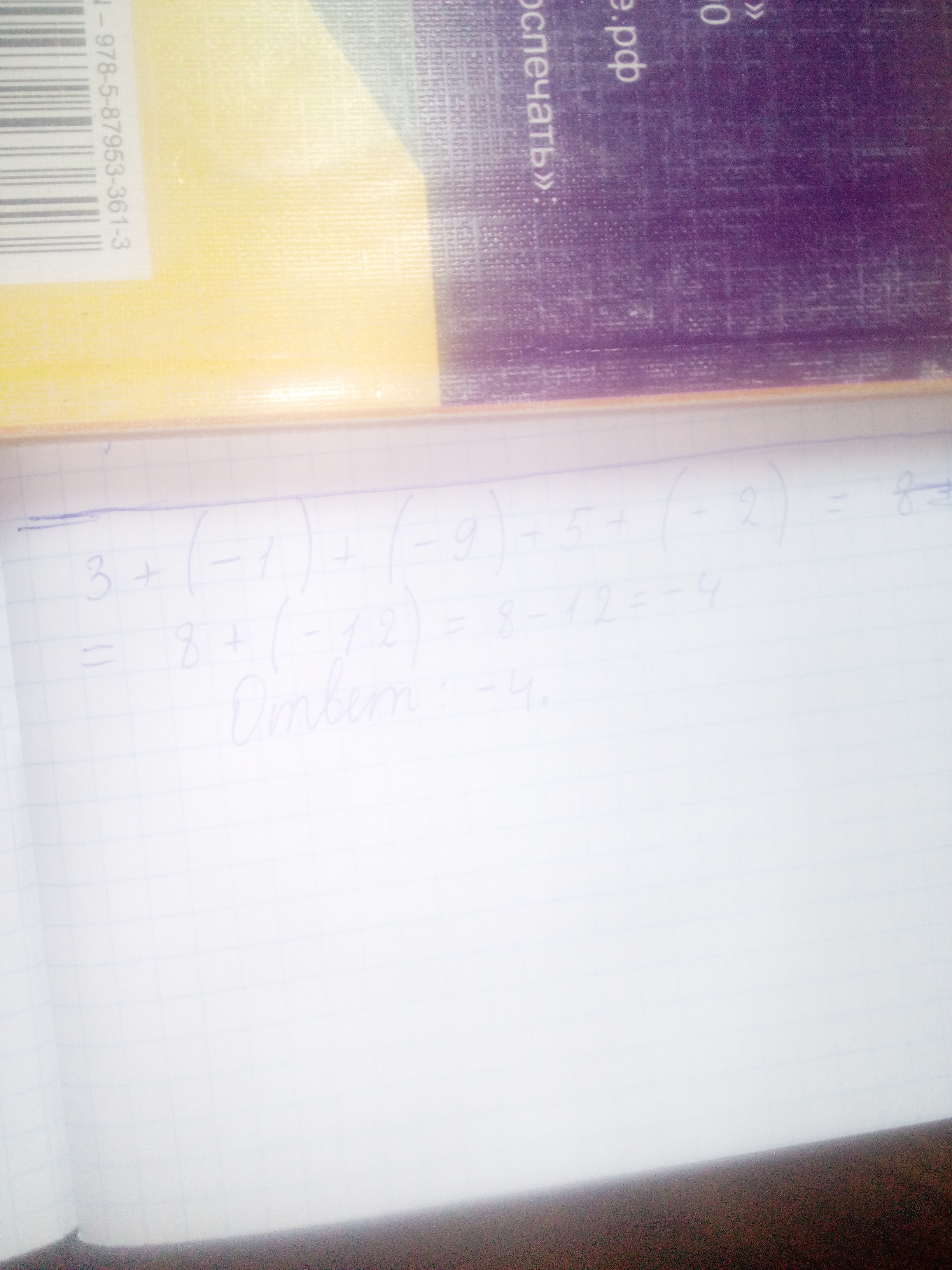 Рационально решим алгебраическое выражение. Запиши данное выражение как алгебраическую сумму. (Слагаемые не меняй местами, запиши без пробелов). 3+(-1)+(-9)+5+(-2) =