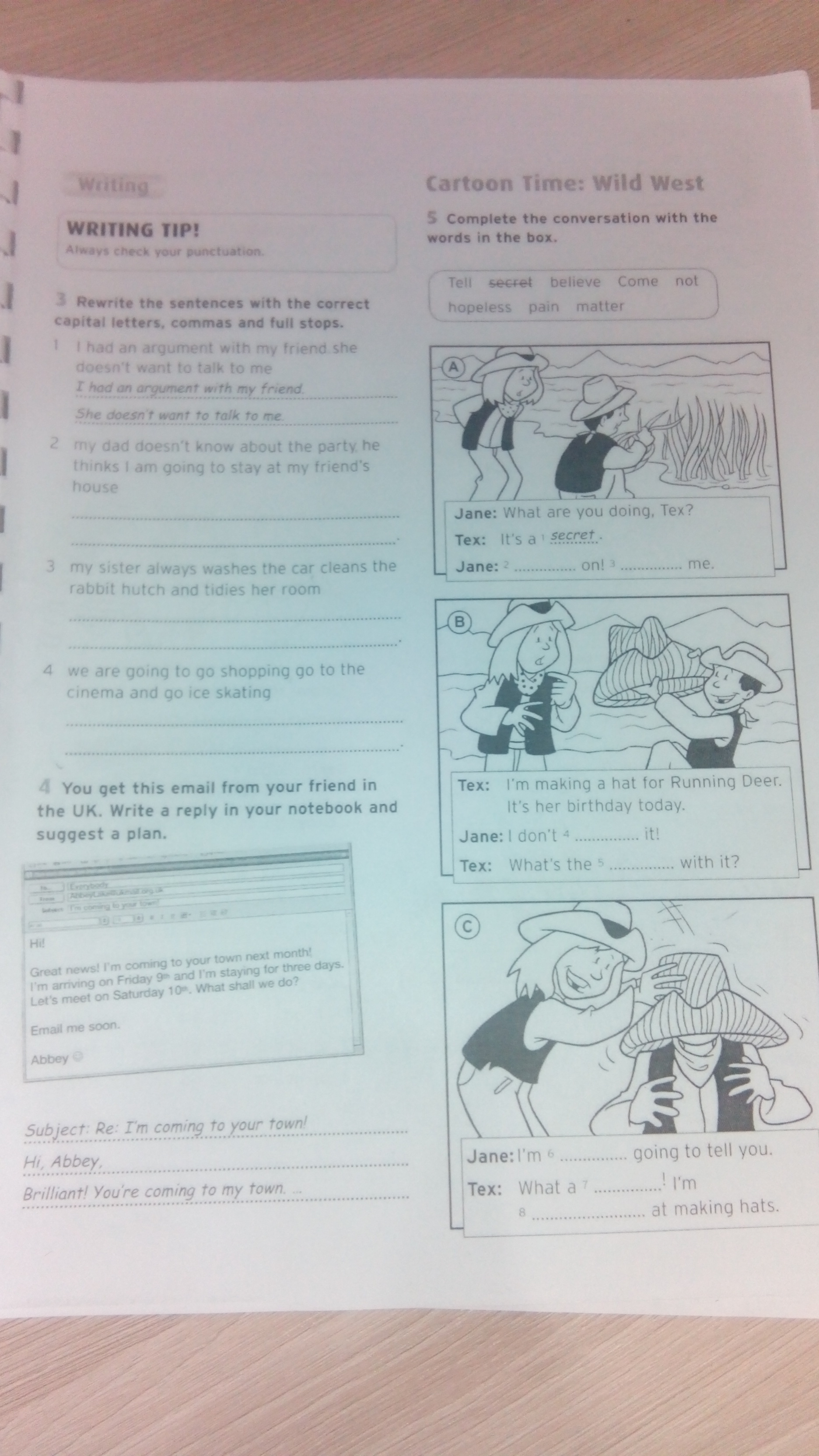 3. My sister always washes the car, cleans the rabbit hutch and tidies her room.
