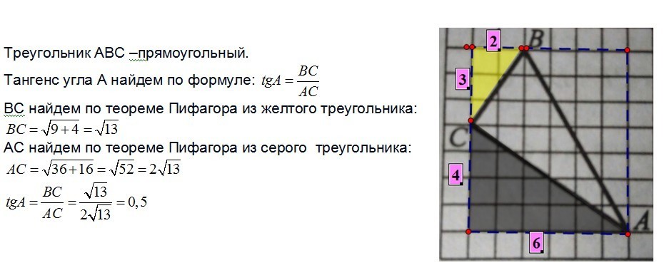 Найдите тангенс угла А треугольника АВС, изображённого на рисунке.