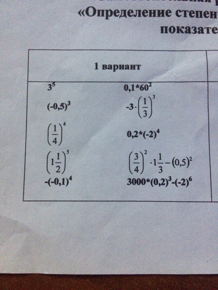 2)−0,5 × (−0,5) × (−0,5) = −0,125; 3)1/16; 4)243/32(целую часть выделишь сам); 4)−0,1^4 = −0,0001; 5)0,1 × 120 = 12; 6)---- 7)----- 8) 88
