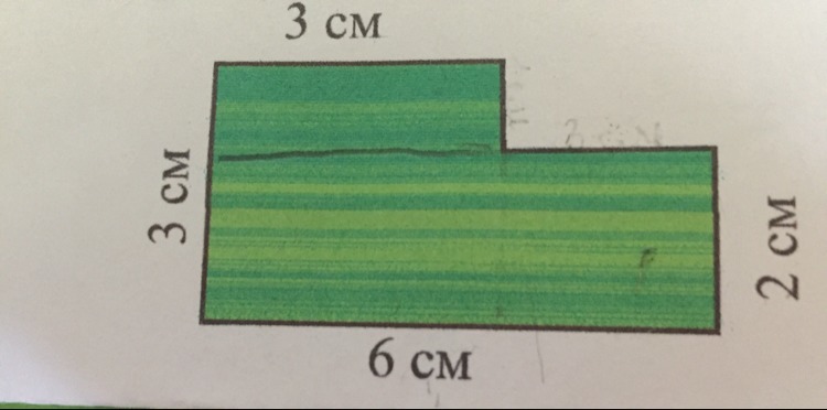 15 сантиметров квадратных площадь и 18 сантиметр периметр как решала: площадь=(3 умножить на (3-2))+(6 умножить на 2)= 15