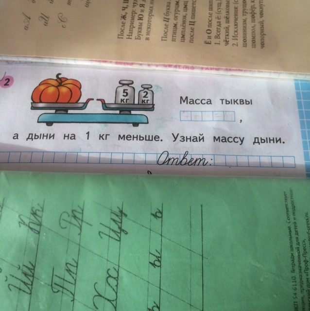 Масса тыквы........, а дыни на 1 кг меньше. Узнай массу дыни.