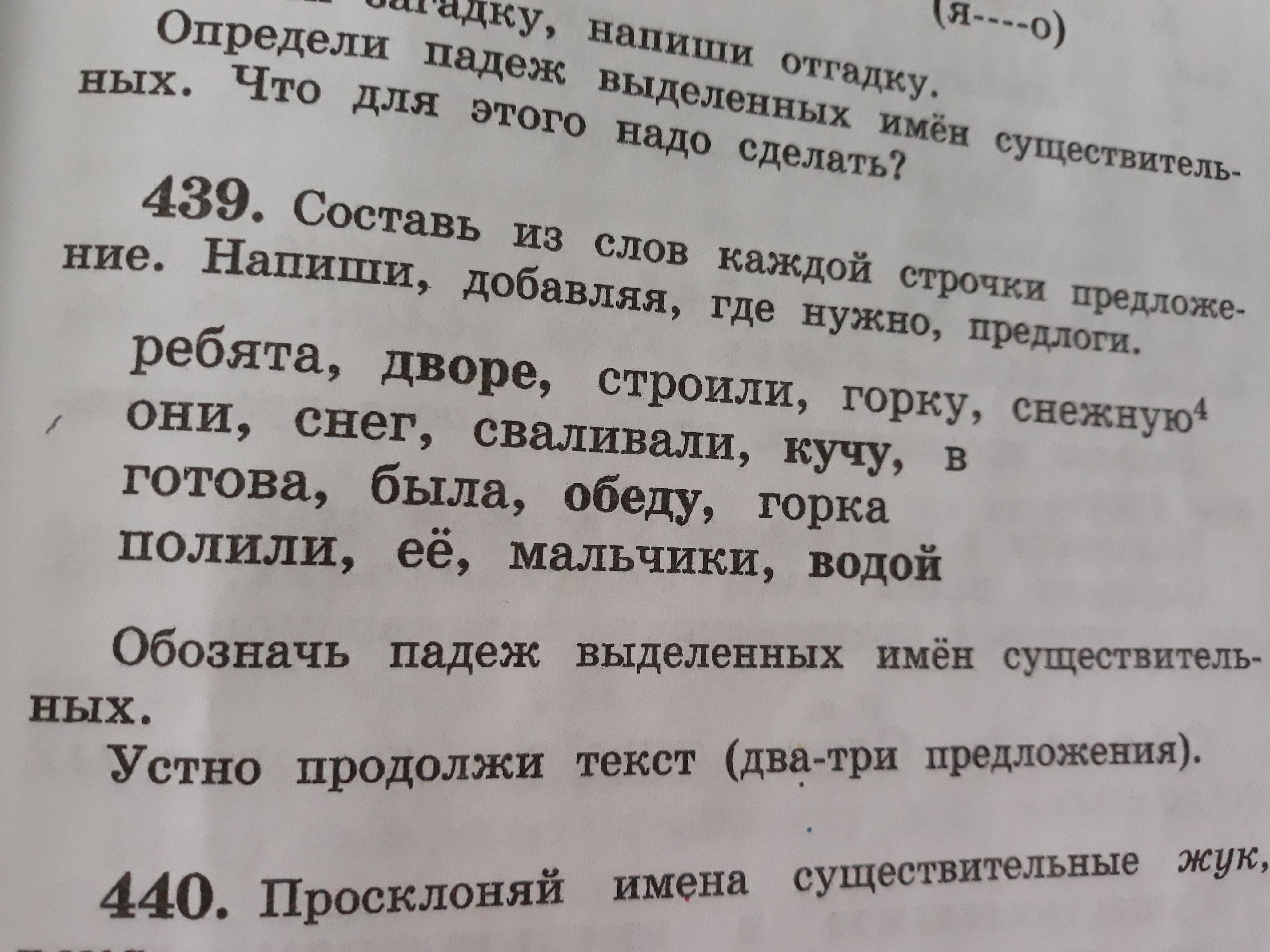 Ребята строили во дворе снежную горку. Они свалили снег в кучу. К обеду горка была готова. Мальчики побили её водой.