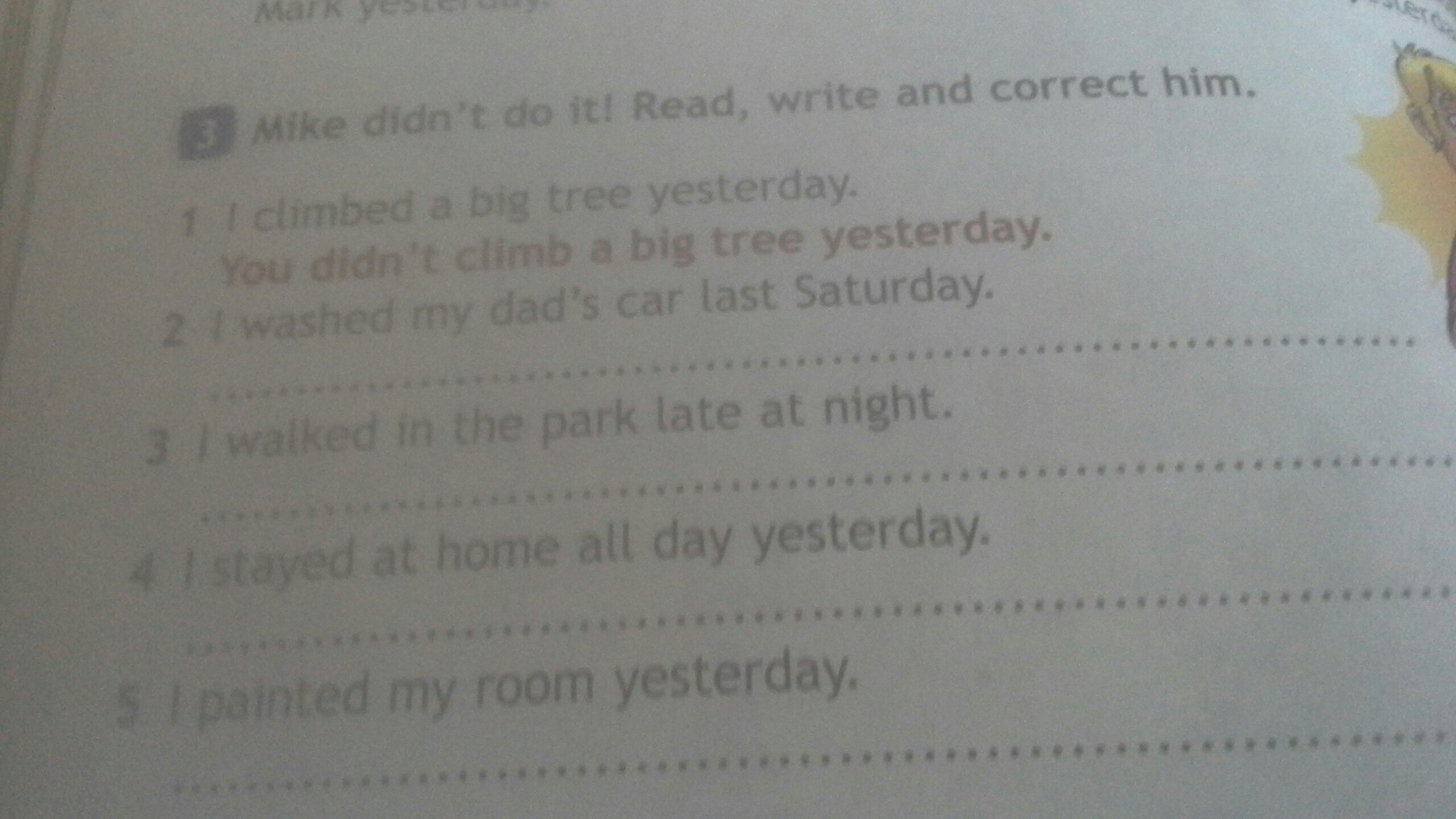 5. You didn't paint your room yesterday.